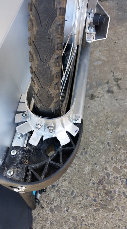 Gleich nach dem Start scheuerte das Schutzblech laut am Reifen, weil Bonny drin saß.