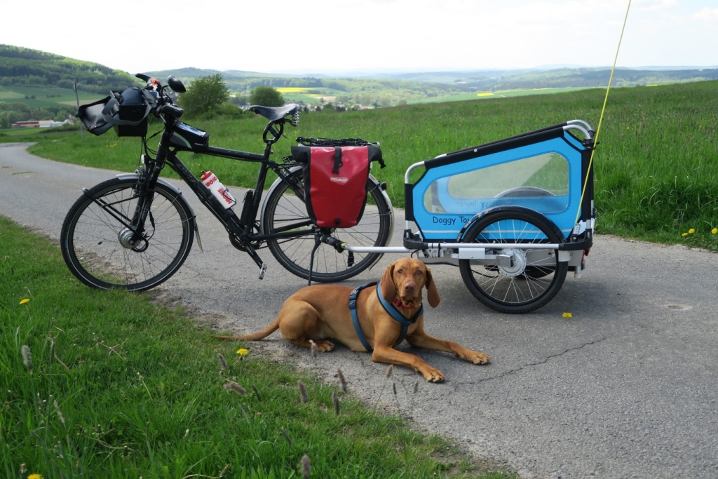 heute gab es eine schöne Tour. Hajo hatte den Hänger dabei und ich durfte ab und zu hineinhüpfen. Es war ein tolles Wetter und wir haben den ganz frischen Spargel geholt, den es in den kleinen Hüttchen gibt. Jetzt ist Spargelzeit, aber ich mache mir nicht soviel daraus.