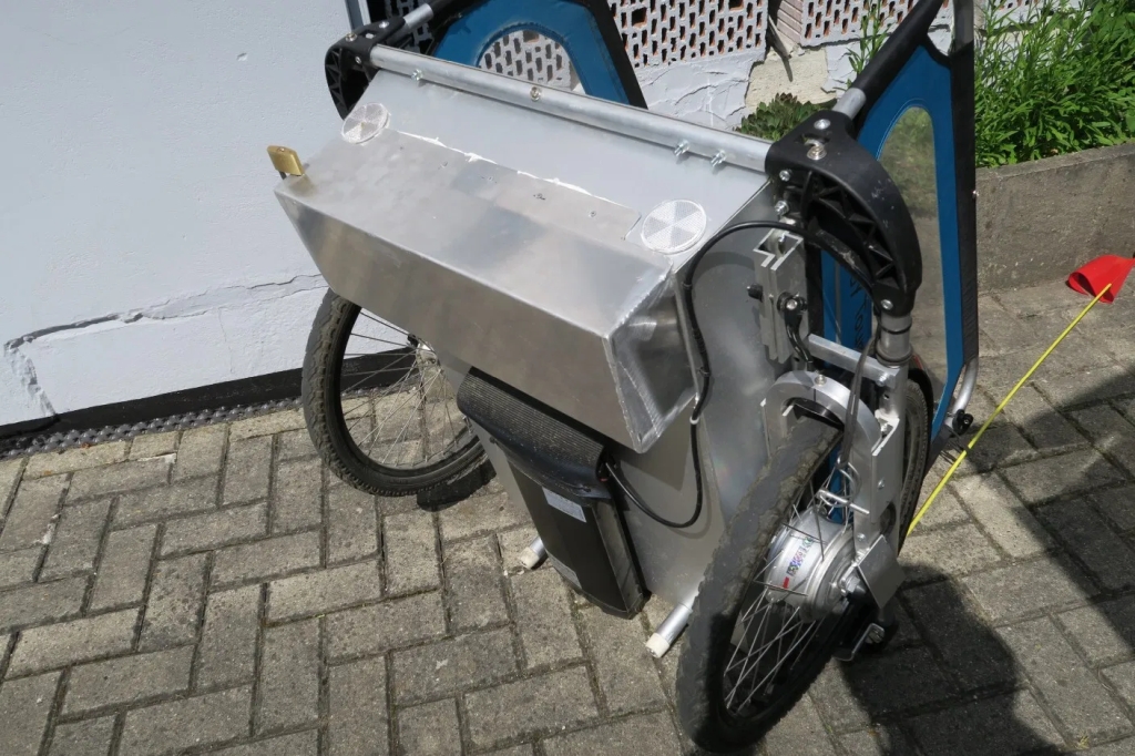 Auf dem Bild seht ihr die neue Werkzeugschublade, die vorne unter dem Hänger hängt. Die Schmiede Minkler in Hertingshausen hat uns die Halterung aus Alu zum Materialspreis überlassen und angebaut wurde sie in der Fahrradmanufaktur Langenberg, von der ihr noch mehr tolle Lösungen an meinem Fahrrad sehen werdet.