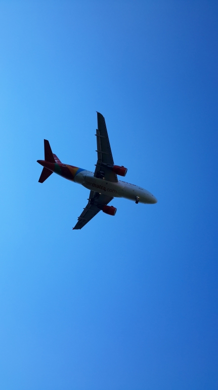 Dann sind wir vorbei – im Grünen und die landenden Maschinen donnern in 40 m über uns weg.