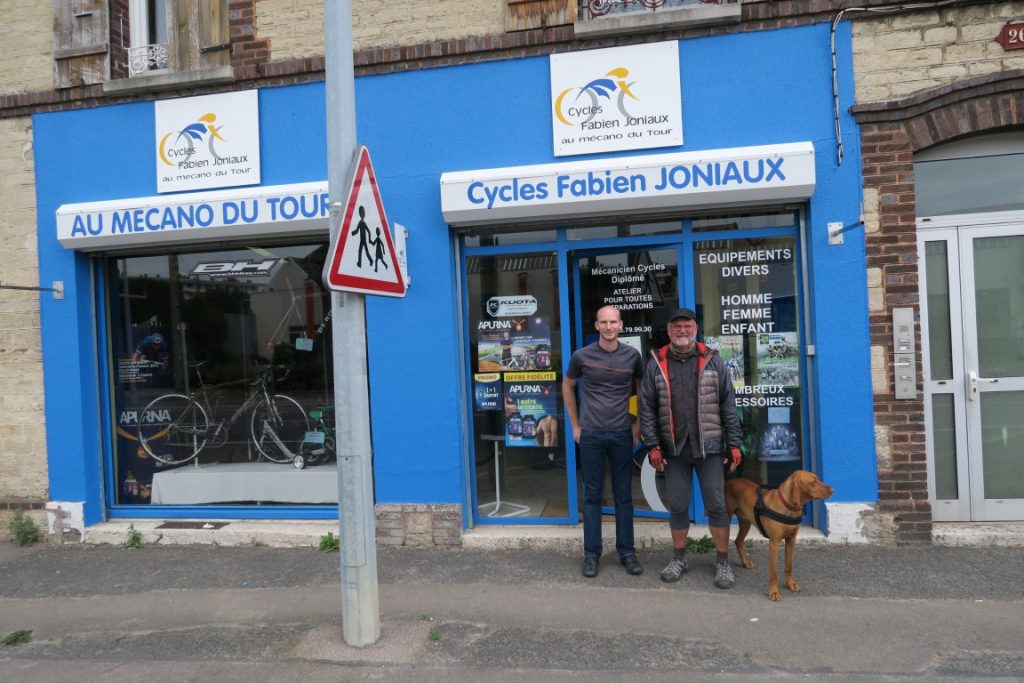 Unsere letzte Hoffnung auf eine Speichenreparatur ist das Geschäft von Fabien JONIAUX – ein  -MECANO du TOUR – wie er im Internet wirbt. Er hat nicht wie alle anderen Geschäfte in Frankreich am Montag geschlossen, sondern öffnet um 14:00 Uhr. Der Mechaniker begrüßt uns freundlich und sagt wieder  – oui – und er will es in einer Stunde erledigen, ohne das Rad ausbauen zu müssen.  Wie das geht ist mir jetzt noch ein Rätsel, denn er hat die alte Spannmutter der gebrochenen Speiche benutzt und fragte nur ob sie auch silbern sein könne – ich erwiderte – egal auch rot oder gelb – im übrigen alle Konversation über seinen PC  – Übersetzungsseite von Google französisch – englisch.