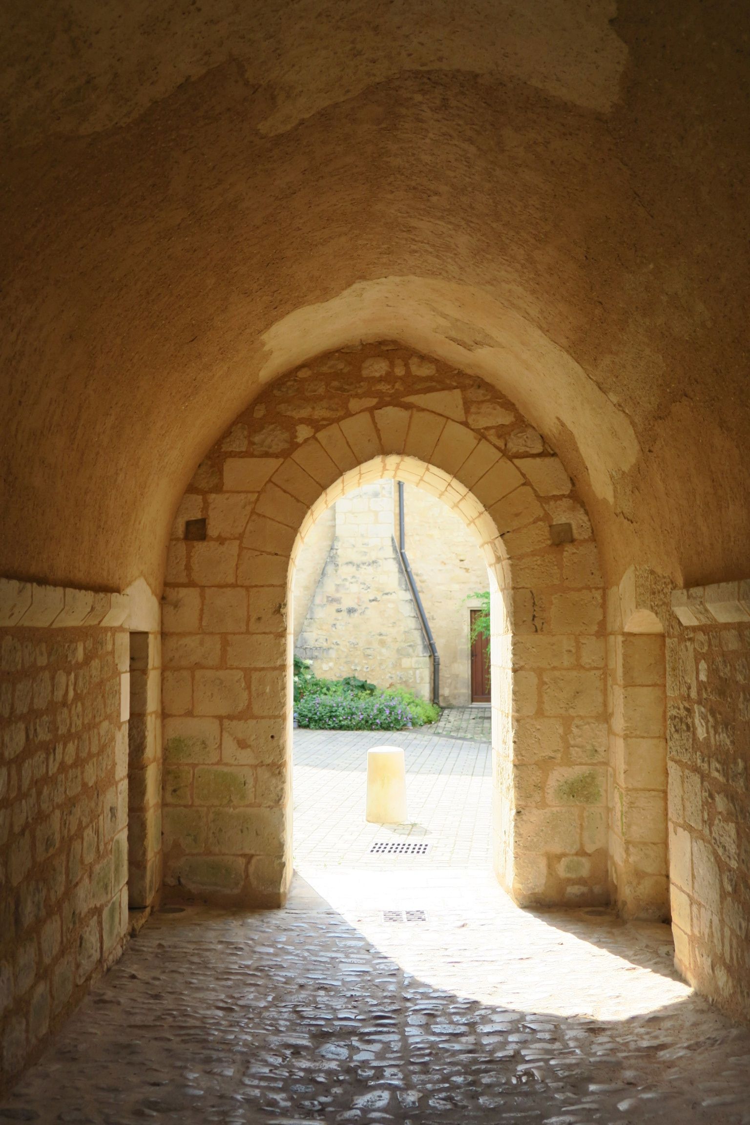 Erst mal nach einem Bäcker in Saint-Benoit fahnden, stoßen aber erst mal auf das ehemalige Kloster St-Andre, aus dem 12.Jhd. An der Fassade und den schönen kleinen verzierten Würfelkapitellen gut zu erkennen.
