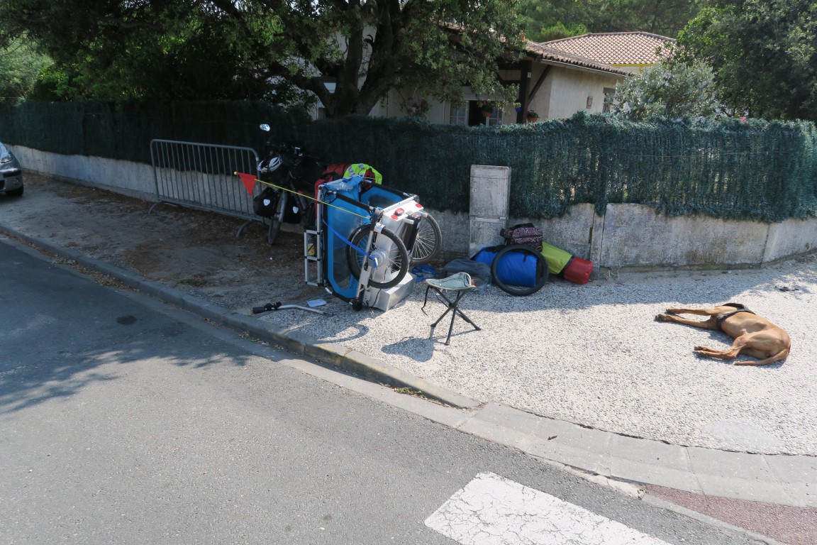 Sowas er wird also mich auch noch hier lassen und essen gehen. Liege gerade in Lesparre Medoc dumm herum, weil Hajo nicht weiterfahren kann auf unserem Camino der Santiago Tripp. Speichenbruch am Antriebsrad des Hängers – er behauptet dann immer – ich bin zu schwer, dabei glaube ich, dass ich abgenommen habe bei dem Fresschen was er mir hier so anbietet – heute schon wieder diese französischen Brocken – hab gar nicht hingeschaut – soll er selber essen –