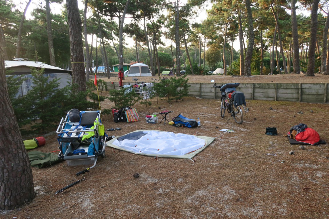 Die kurze Speiche ist nicht zu bekommen – erst Mal hat in Frankreich alles Montags zu und wenn dann gibt es das nur in Bordeaux – weiß der himmel wo? Und morgen ist erst recht alles zu weil Nationalfeiertag – Bin aber auf einem kleinen Bauerncampingplatz aufgenommen worden, obwohl alles belegt ist – Führung hier wieder ein netter Holländer, mit Chambre d’Hotes und kleinem Hotel. Habe mir das Abendbrot genehmigt – kostet alles nicht soviel wie die letzte Nacht in Hurtin Plage. Wenigstens meine französichen Simkarte bietet mir hier 4G und darum kann ich den Blog schreiben und meinen Kummer verbreiten. Ich bin hierher gefahren –
