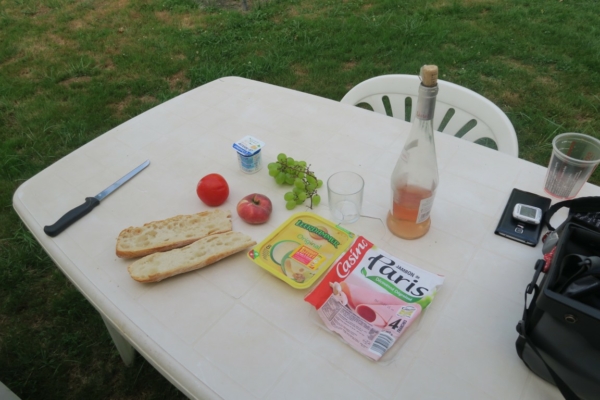 Wir bereiten uns das Abendbrot vor – ich habe den Wein kalt stellen können,