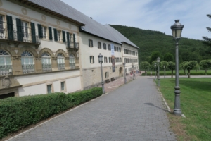 Der Treffpunkt aller Pilger, die in Saint-Jean-Pied-de-Port starten. Dementsprechend ist auch der Andrang. Sie haben 114 Schlafplätze, aber nur die Hälfte ist belegt. Ich habe keine Chance mit Hund ins Haus zu kommen, aber ich kann mein Zelt vor dem ehemaligen Kloster aufschlagen und sonst alles nutzen – Dusche, Sanitär, Pilger Menü usw. für 3€. Ich bleibe. Habe sowieso keine Lust auf Weiterfahrt – bin kurz davor abzubrechen – warum kommt mir nur immer was Technisches dazwischen?