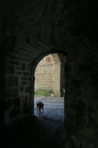 in Valcarlos ist auch eine Essens Pause – die kleine Kirche ist gerade voll – es ist ja Sonntag und der Gesang dringt zu uns herüber.