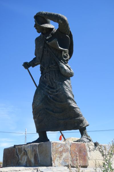 hier steht die große Statue des San Roque oder das Bild des Pilgers aus dem Mittelalter, wie sie wohl zu Tausenden damals hierher gewandert sind…und es ist windig – stürmisch….