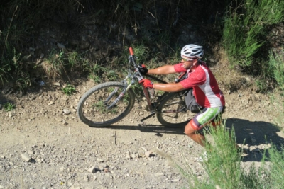 So kann ich in Ruhe die Pilger beobachten, die auf dem original Camino hier hoch steigen – gefolgt von den Mountainbikern, die auch nur schiebend hier hoch kommen….