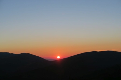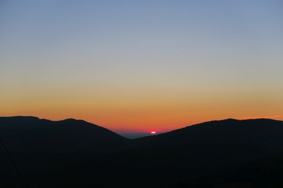Typisches Fernfahrerhotel – direkt an der Autobahn, die hier ja mitten durch die Berge führt. Es geht los.
